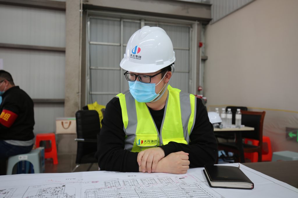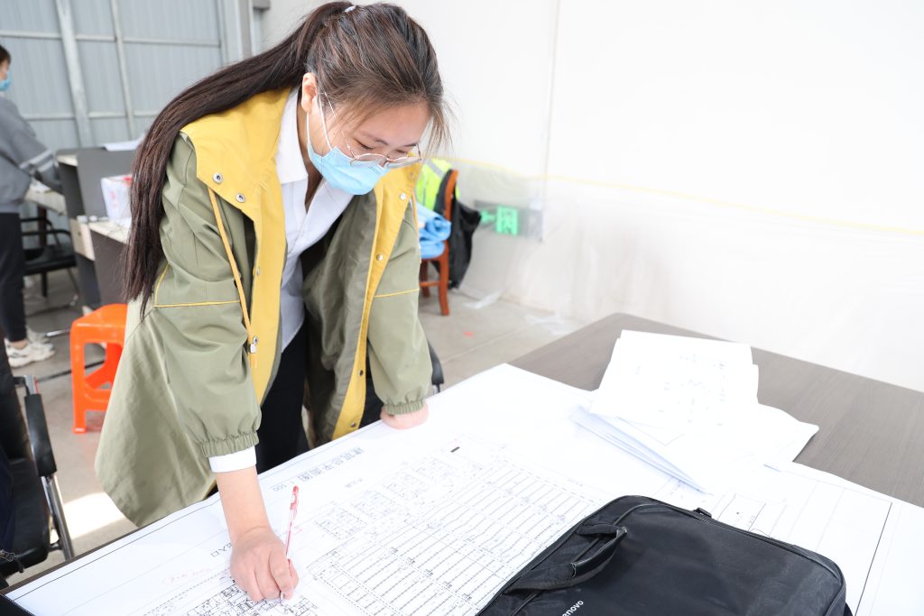 在收到方舱医院建设任务后,主动申请加入项目建设中。通过运用BIM技术对1#车间进行全天展示。同时参与到弱电工程施工任务中,包括摄像机、对讲机、无线AP、音响、电磁锁、机房建设,主要负责弱电工程的设备管理工作,每天两人于凌晨三点进行换班,不辞辛苦,努力做好协调管理工作。