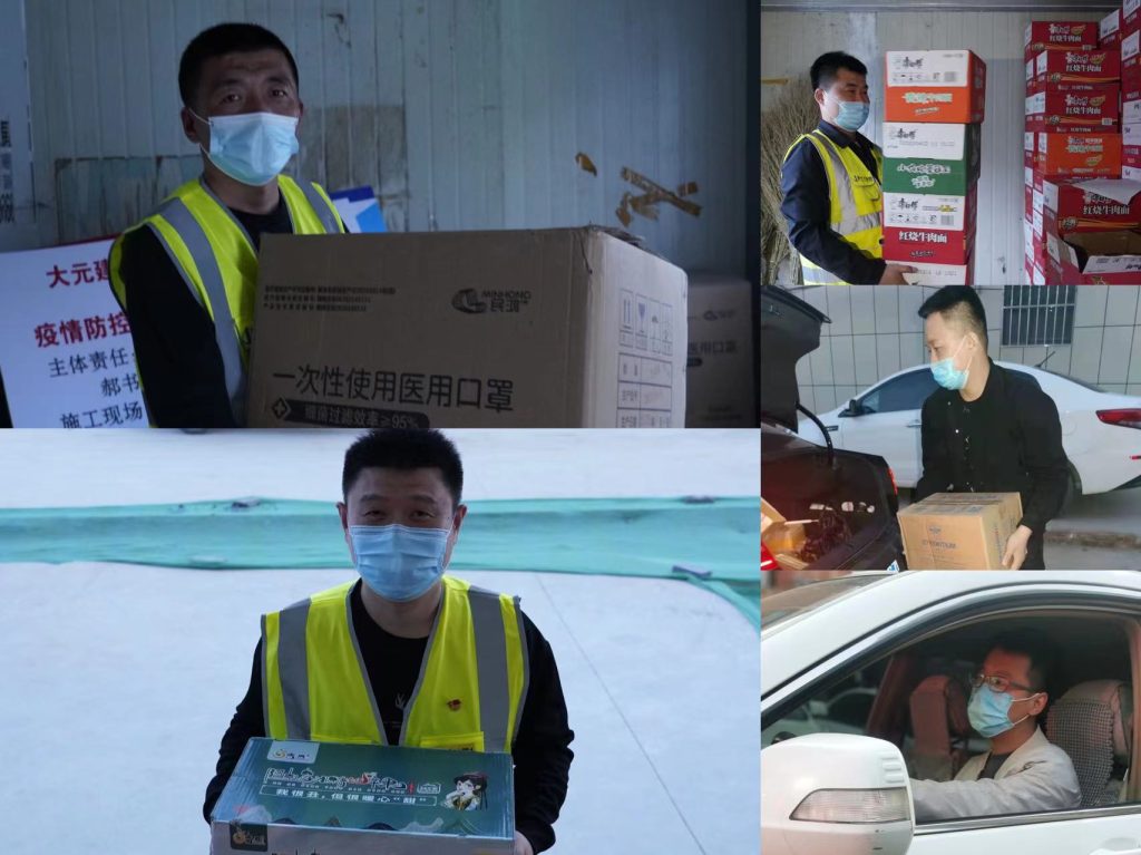 集团总部齐平安、张二田、张鹏、陈雨主要负责现场全员信息登记、餐饮、住宿、办公等,司机李元林、李前程、于彬、张学斌、程超主要负责后勤物资采买和运输,李佳、张昊主要后方保障;实业集团武恩冰、王洪霞、张增阳、王永胜主要负责全员核酸检测;元正文旅集团苏娜负责外地货物到达,与高速公安、交警防疫对接,保障了外地设备和物资顺利进场,确保工程进度。