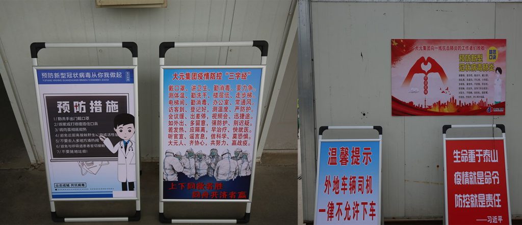 张贴和设置防疫宣传牌,全面落实防疫要求和现场人员防疫督导。