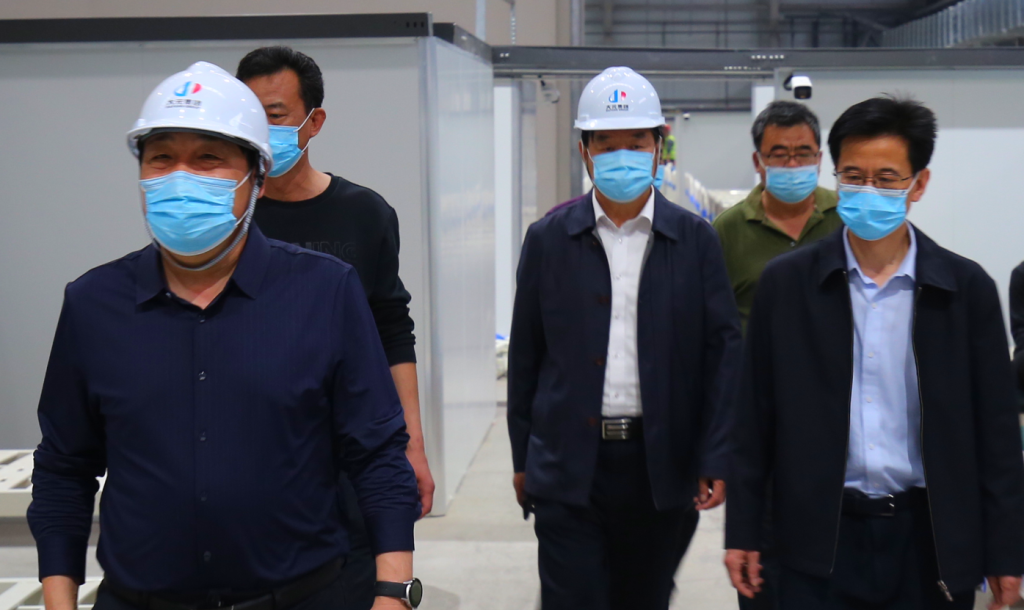 4月11日下午,沧州市住建局党组书记、局长杨新庆,质量服务中心主任温和民、副主任刘彦振视察方舱医院建设情况,千亿官网-千亿(中国)一站式服务官网党委书记、董事局主席李建国,建业集团董事长、CEO王连兴、集团副总裁、监事会主席郝书明陪同。视察了方舱医院施工现场的有关情况,了解项目整体情况及建设进度。