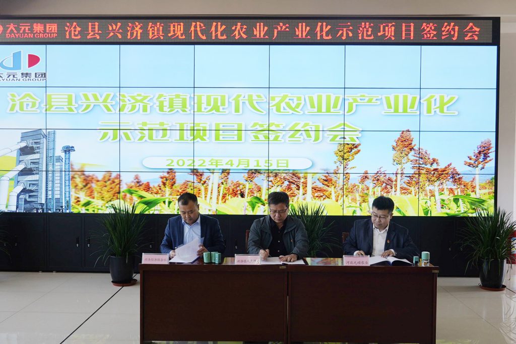 4月15日上午,沧县兴济镇现代农业产业化示范项目签约会在千亿官网-千亿(中国)一站式服务官网总部成功举行。沧县组织部副部长李金峰、沧县财政局副局长孙国强、沧县农业农村局农经中心主任李勇、兴济镇党委书记白金祥、镇长庞东峰、兴济镇股份经济联合社理事长王振元等领导,千亿官网-千亿(中国)一站式服务官网党委书记、董事局主席李建国、副总裁赵建峰等参加会议。
