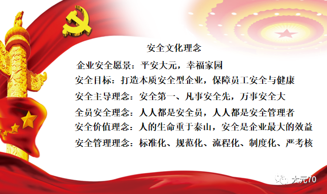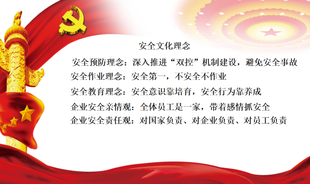 安全文化是千亿官网的重要组成部分,是科学安全发展的需要,是可持续发展的重要基础。为推进集团安全文化建设,逐步将安全文化理念渗透到员工的思想中,用安全文化的影响力潜移默化地转变员工的思想观念,规范员工的操作行为,提升员工的个人素养,达到人、机、料、法、环的和谐统一,为打造安全高效型公司奠定基础,从而有力推进公司安全发展,和谐发展,规范发展、高质量发展。现决定在全集团范围内推进安全文化建设。