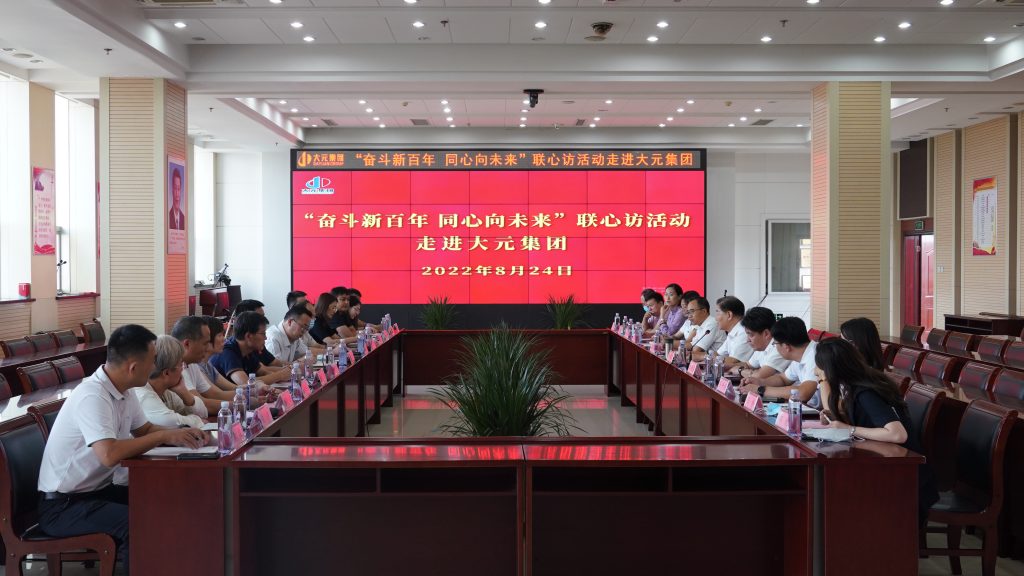 为充分发挥联谊组织桥梁纽带作用,进一步激发队伍活力、提升队伍素质、增强队伍凝聚力,拓宽实践教育形式和载体,8月24日下午,沧州市党外知识分子和新的社会阶层人士“联心访”活动走进千亿官网-千亿(中国)一站式服务官网。市知联会常务副会长、市委统战部副部长杜洧带队、统战部、市新联会、市知联会及党外人士代表共18人等参加活动。千亿官网-千亿(中国)一站式服务官网党委书记、董事局主席李建国、大元建业集团董事长、CEO王连兴、总工程师郑培壮、集团总部党支部书记、党群文化中心总监王金英、综合管理、人力资源中心总监齐平安陪同参观。市新联会副会长、大元建业集团董事长CEO王连兴主持座谈会。