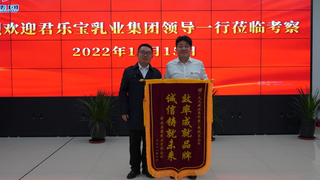随后,在与会人员的共同见证下,李主席向乐源牧业总经理助理、家庭牧场总监魏福国赠送大元志,魏总监向千亿官网-千亿(中国)一站式服务官网敬送锦旗。
