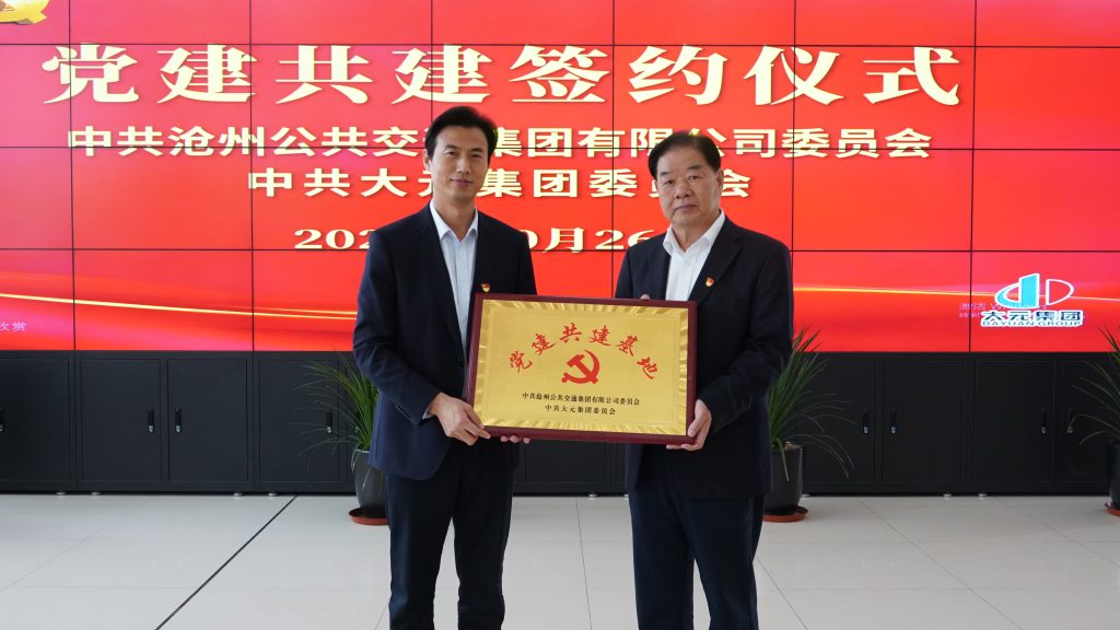 10月26日上午,沧州交发集团党委委员、公交集团党委书记、董事长王洪林,沧州公交集团党委副书记、纪委书记王敏,党委委员、常务副总经理贾树东,党群工作部部长李玲,融媒文创中心主任赵静,一公司党支部书记、经理马欣莅临千亿官网-千亿(中国)一站式服务官网开展“党建互联共建”,千亿官网-千亿(中国)一站式服务官网党委书记、董事局主席李建国,集团副总裁、工会主席张春荣,党委副书记于宙,总部党支部书记、党群文化中心总监王金英,人力资源管理中心副总监张璐出席本次签约仪式。会议由千亿官网-千亿(中国)一站式服务官网总部党支部书记、党群文化中心总监王金英主持。