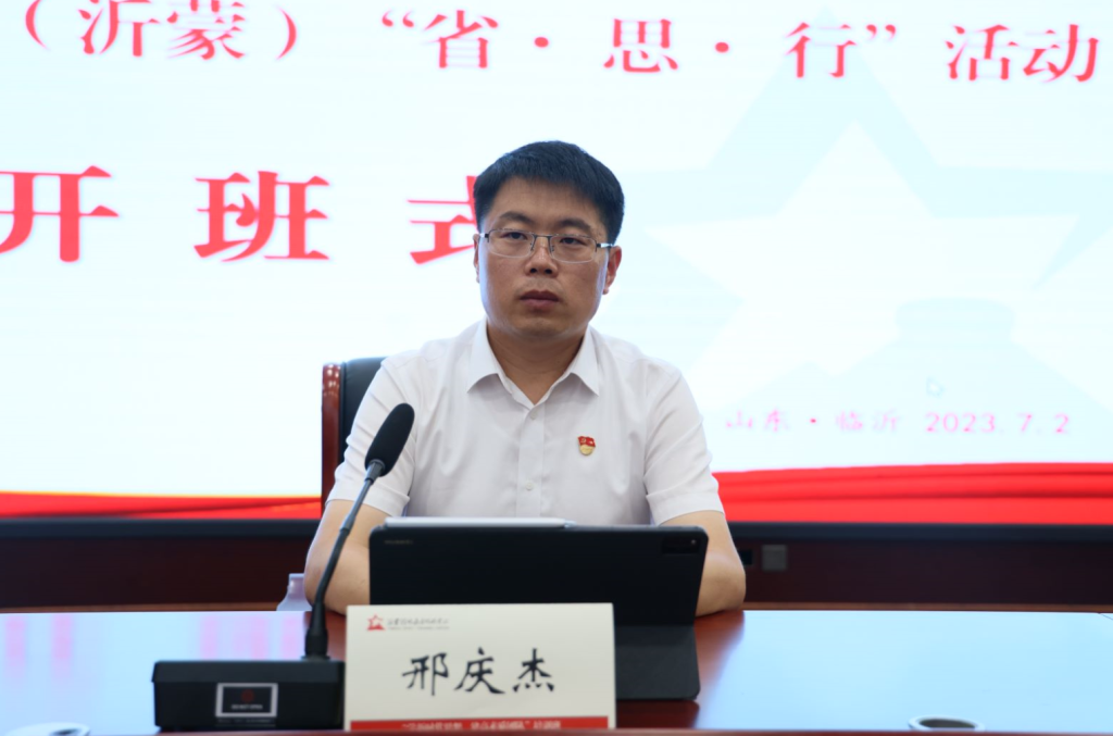 7月2日,“学新时代思想 建高素质团队”千亿官网-千亿(中国)一站式服务官网2023年(沂蒙)“省·思·行”活动暨第五期党员培训班在沂蒙精神教育中心成功举办,千亿官网-千亿(中国)一站式服务官网全体学员参加仪式。临沂沂蒙精神教育培训中心党支部书记、常务副主任邢庆杰出席仪式。会议伊始,全体起立奏唱国歌。