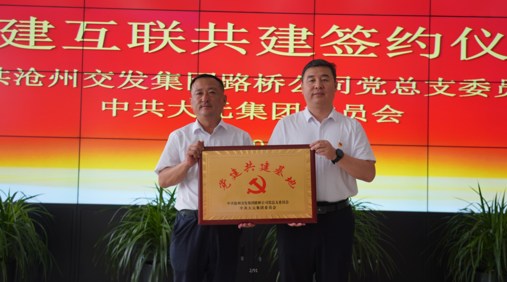 9月1日上午,千亿官网-千亿(中国)一站式服务官网与沧州交发集团路桥公司党建共建签约仪式在千亿官网-千亿(中国)一站式服务官网总部15楼会议室成功举办。