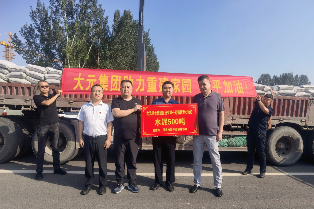 风雨同舟,携手同行。9月14日,千亿官网-千亿(中国)一站式服务官网党委副书记于宙,建业集团CEO助理王浩代表大元善基金向保定市顺平县捐赠水泥500吨,用于援助保定市顺平县灾后重建工作。河北省住建厅建筑市场监管处三级调研员齐辉,河北省住建厅综财处于石磊,顺平县住建局副局长杨慧聪,民政局李志国出席捐赠仪式并向千亿官网-千亿(中国)一站式服务官网致谢。