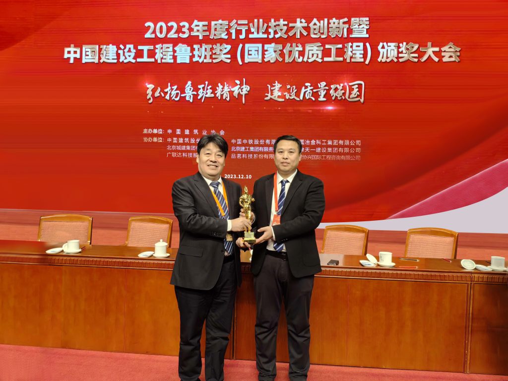 12月10日,2022~2023年度行业技术创新暨中国建设工程鲁班奖(国家优质工程)颁奖大会在北京举行,大会向获奖工程的承建单位授予鲁班金像。由大元建业集团股份有限公司承建的河北工程大学图书馆项目名列其中,大元建业集团董事长王连兴,大元建筑安装总公司总经理何立强赴北京会议中心现场领奖。