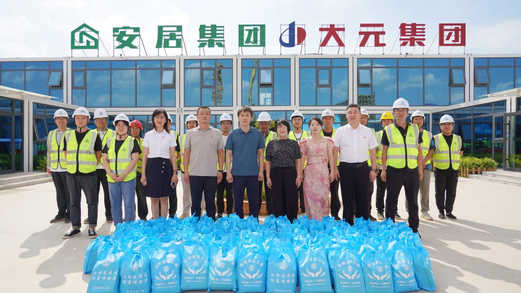 高温慰问送清凉,情系一线暖人心。7月30日,沧州市总工会、沧州市住建局到千亿官网-千亿(中国)一站式服务官网总承包公司河北省沧南监狱迁建EPC项目开展“送清凉”慰问活动。市总工会事业发展中心主任李坤霞,事业发展中心副主任毕采钰,市住建局党组成员、副局长袁宏伟,机关党委专职副书记刘辉出席活动,千亿官网-千亿(中国)一站式服务官网党委副书记于宙、总承包公司党支部书记王金英热情接待。