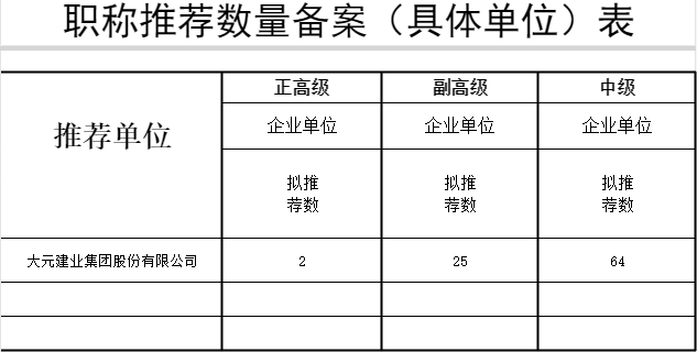 大元建业集团股份有限公司2025年职称推荐数量公示